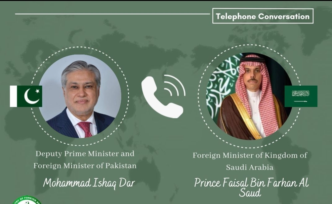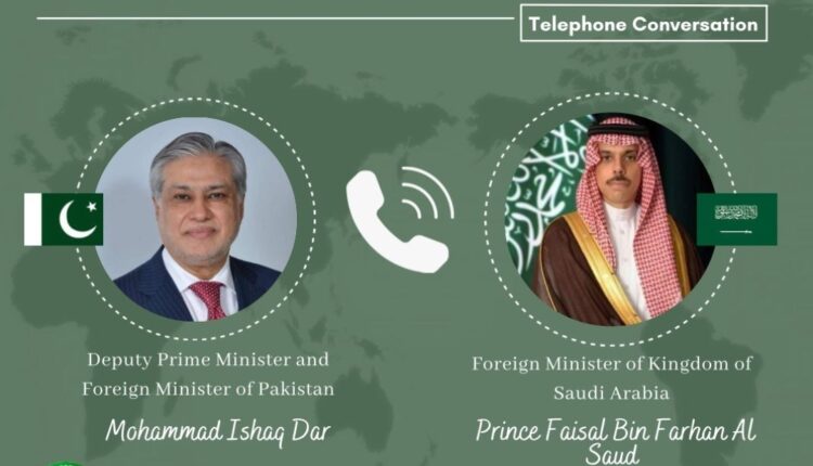 Islamabad: Deputy Prime Minister and Foreign Minister Senator Ishaq Dar held a telephonic conversation late last night with the Foreign Minister of the Kingdom of Saudi Arabia, His Highness Prince Faisal bin Farhan Al Saud.