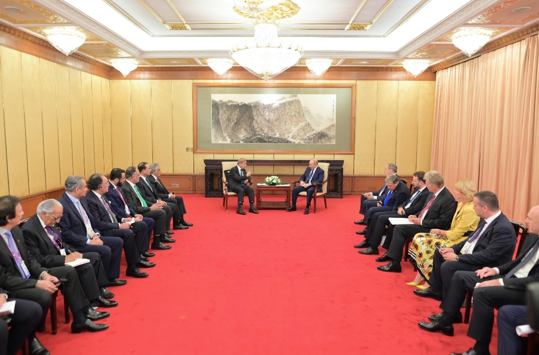 Beijing : Prime Minister Muhammad Shehbaz Sharif and Russian President Vladimir Putin reaffirmed their commitment to strengthening bilateral relations in various fields, including the promotion of trade. On Tuesday, Prime Minister Shehbaz Sharif met with Russian President Vladimir Putin here.