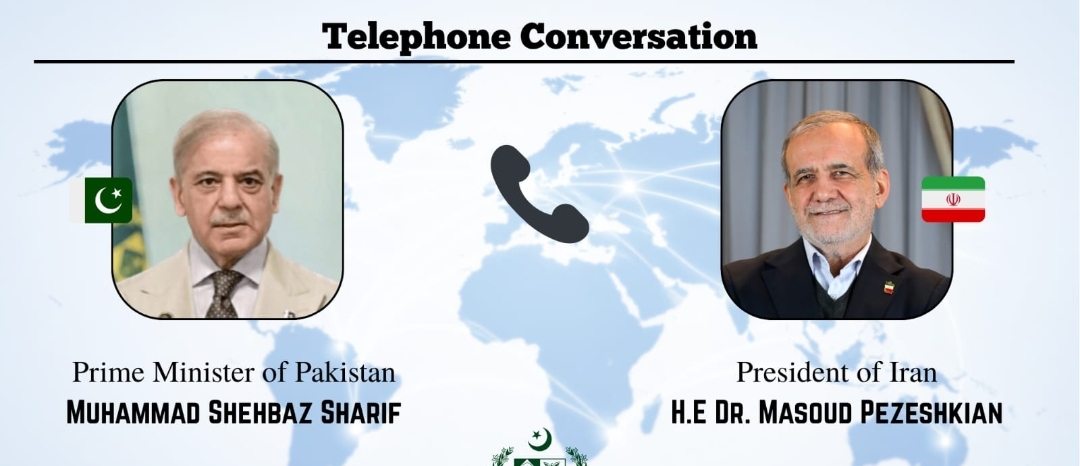 Islamabad:Prime Minister Muhammad Shehbaz Sharif held a telephone call with Dr. Masoud Pezeshkian, President of the Islamic Republic of Iran, this evening.